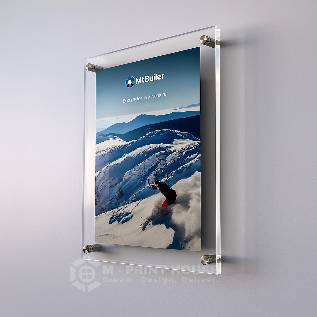 Display your posters in style with Acrylic Sandwich Posters from M Print House UAE. Designed with two clear acrylic panels that hold your print securely in place, these displays offer a sleek, frameless, and professional look that’s perfect for offices, showrooms, retail stores, cafes, exhibitions, and events.