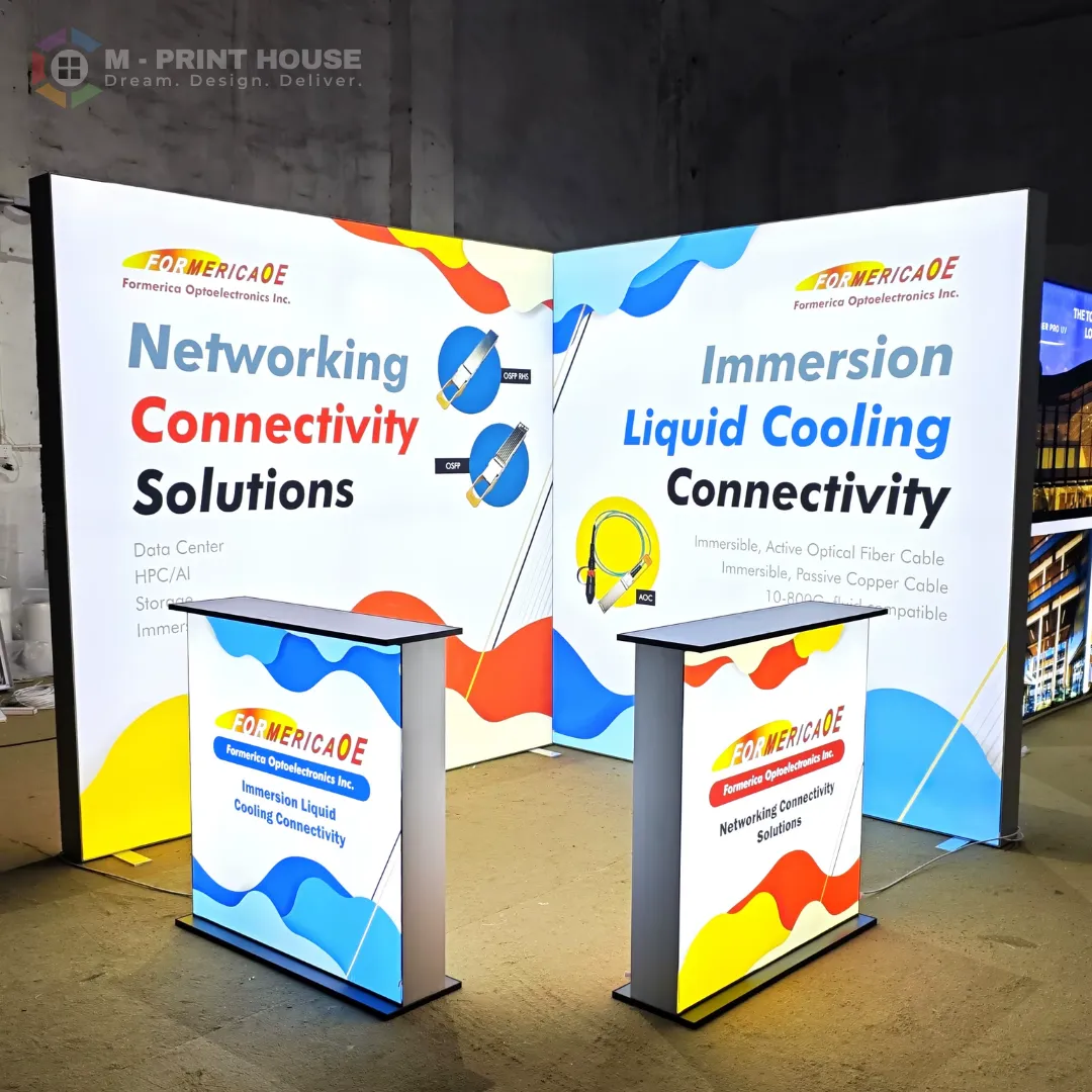 Elevate your exhibition or trade show presence with Backlit Exhibition Backdrop Walls from M Print House UAE. These professional backlit walls ensure your branding is visible from every angle, providing even, vibrant illumination and a polished, high-impact display.