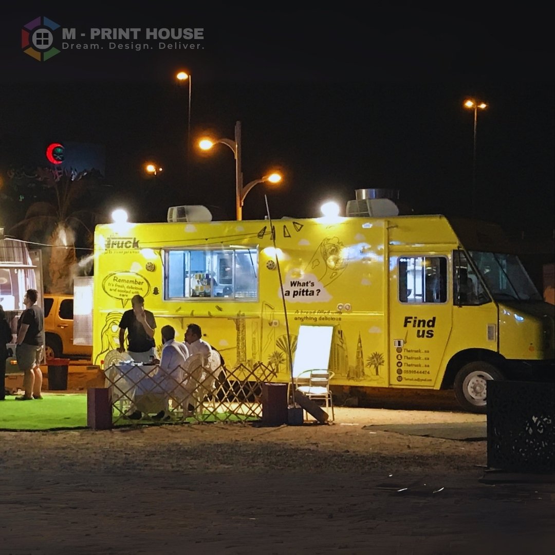 Transform your food truck into a moving advertisement with professional branding in Dubai & Sharjah. Contact M Print House for custom designs, premium vinyl, and expert installation to boost your food business visibility.