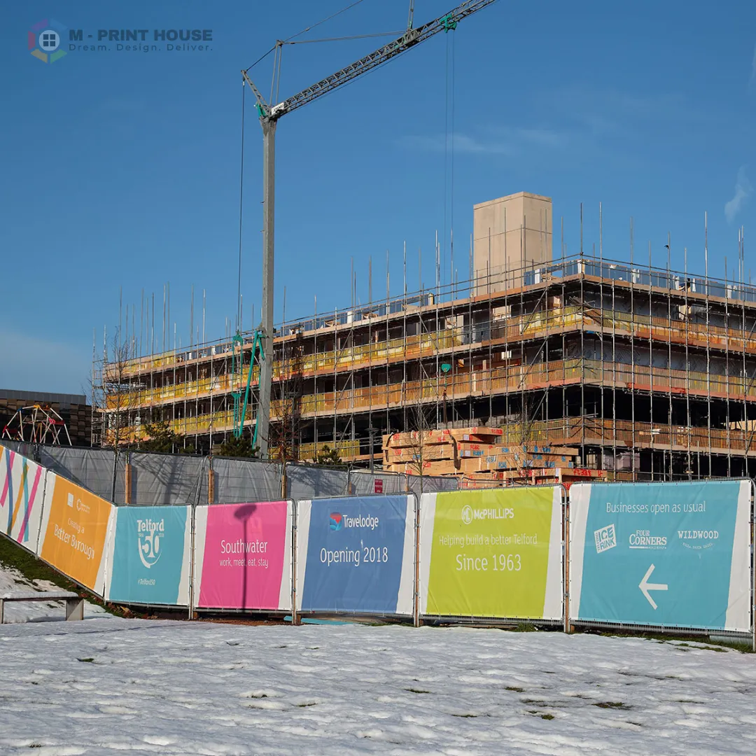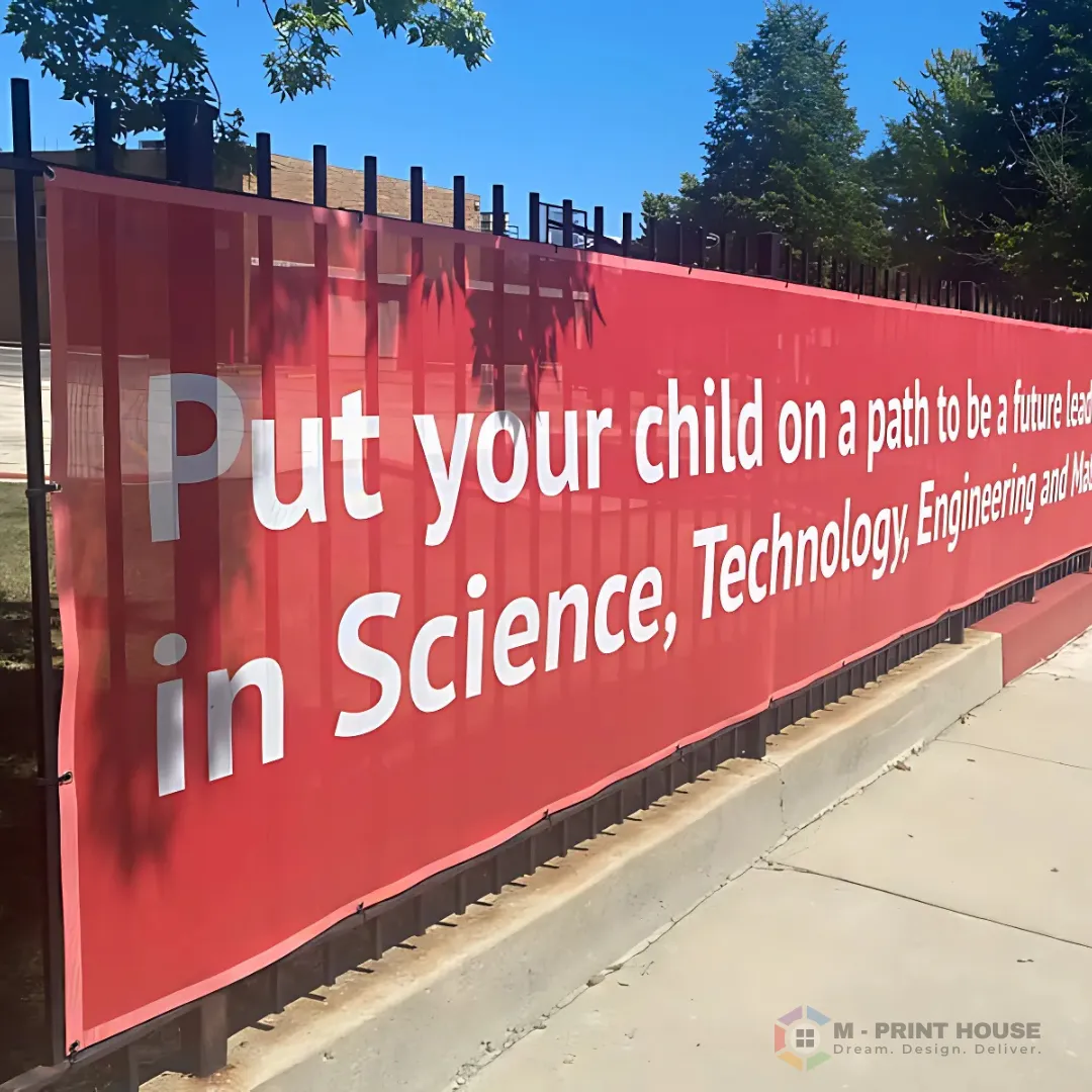 PVC Fence Banners Dubai | Outdoor Mesh & Solid Banners UAE | M Print House