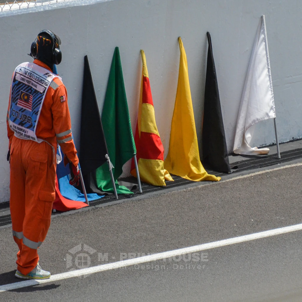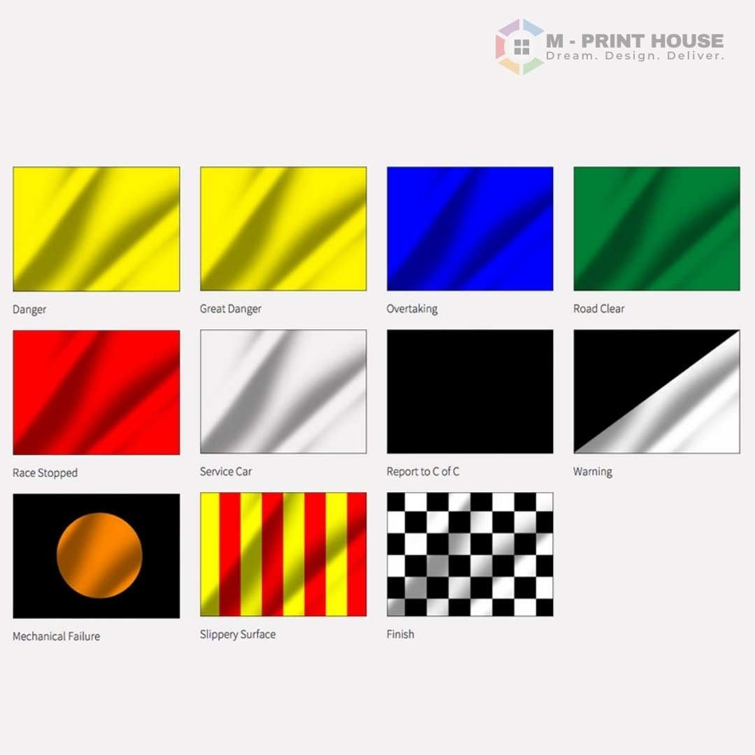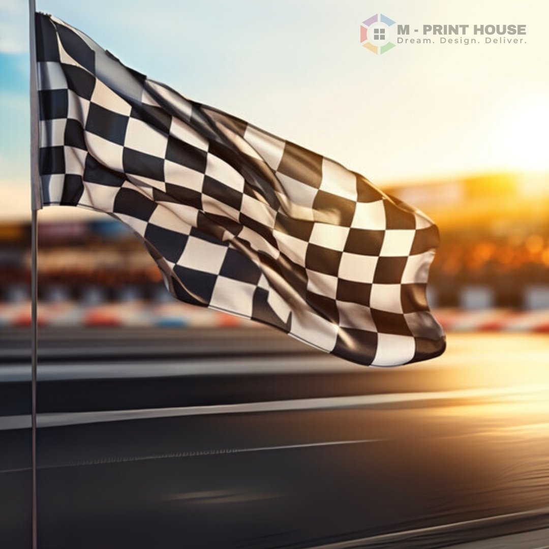 Command attention on the track with custom racing flags from M Print House UAE. Essential for motorsport events, karting races, rallies, and promotional shows, our flags are designed for maximum visibility and durability, ensuring clear communication and branding during high-speed action.