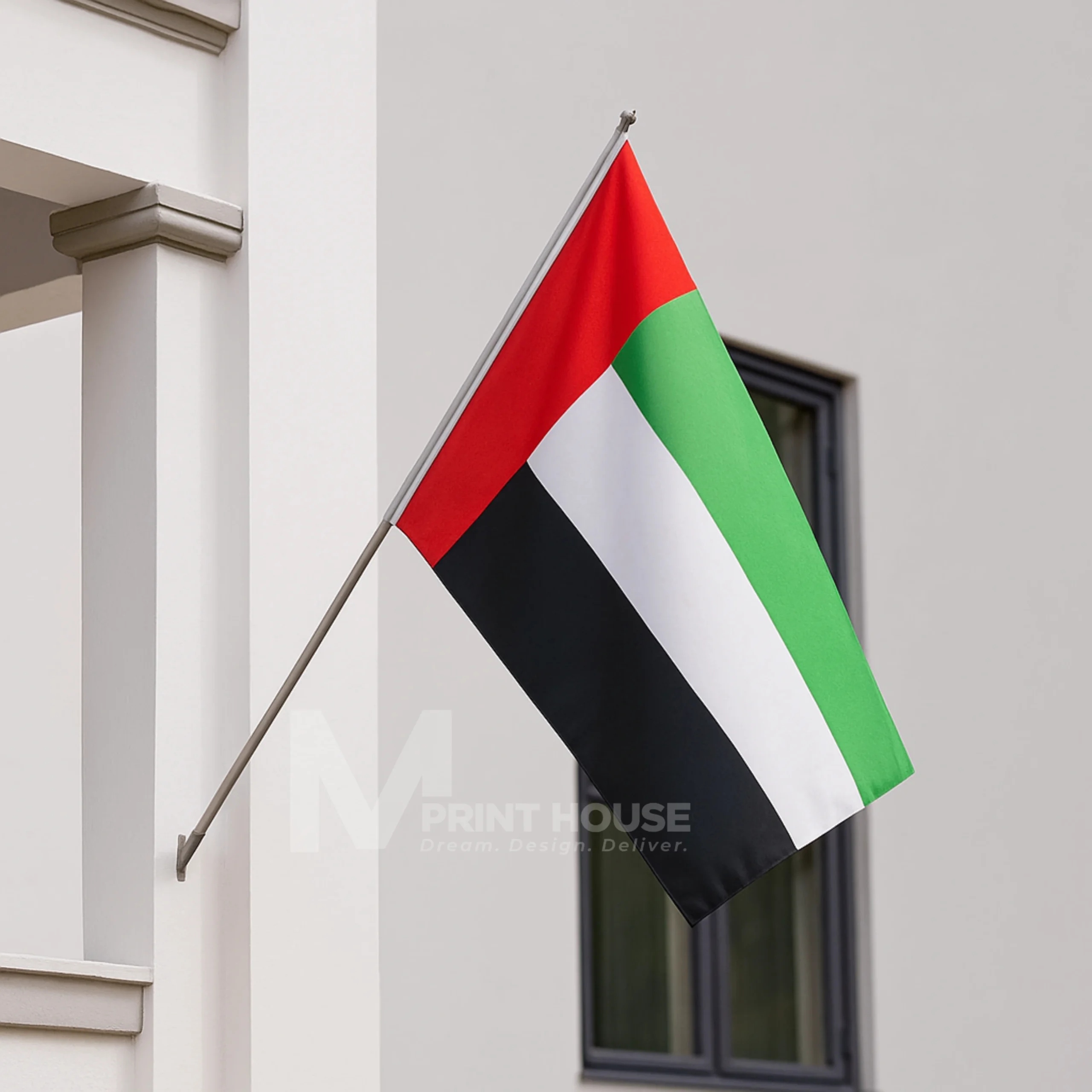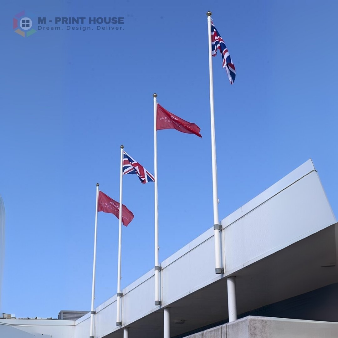 Make your message unmissable with custom wall mounted flags from M Print House UAE. Perfect for high-traffic areas with limited ground space, these flags project outward from building façades, turning every passerby into a potential viewer.