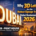 Walk through any commercial district in Dubai — Downtown, Business Bay, Deira, or JBR — and one reality becomes obvious: businesses that use 3D letter signage command attention while flat signs disappear into the background. This isn’t a short-lived aesthetic trend. It is a deliberate, ROI-driven branding decision that forward-thinking Dubai businesses are making in growing numbers.